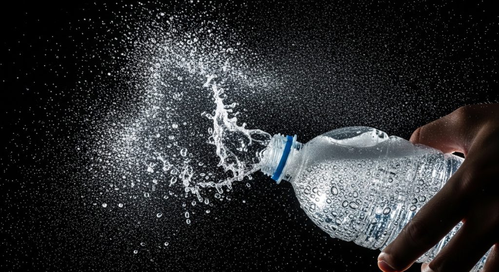 炭酸飲料を振ると噴き出す仕組みの核心は、「泡の核(核生成)」にあります。ボトルを振ることで液体と空気の境界がかき回され、二酸化炭素が小さな泡として液体中に分散します。さらに、ペットボトルや缶の内壁にある微小な傷や凹凸にも泡がくっついて増殖します。激しく振ると、数万から数十万個もの微細な泡の核が一斉に生成されるとされています。